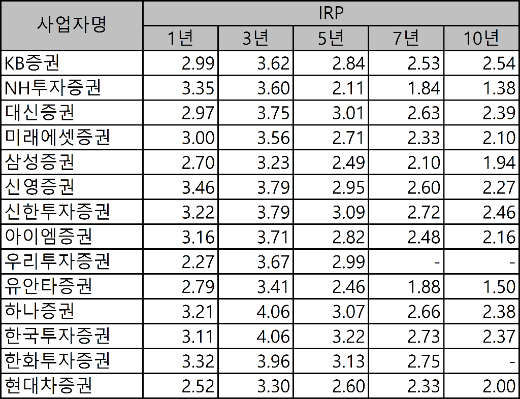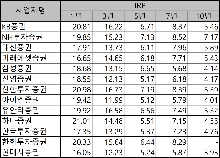IRP 계좌 원리금보장 상품에 대한 투자 수익률입니다. DC형 계좌와 대동소이하다고 할 수 있습니다.