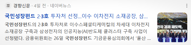 현재 국민성장펀드 투자처로 선정된 곳들에 대한 뉴스 기사들입니다.